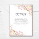 Informações Cartão de Gabinete de Detalhes do Casamento Floral