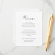 Eu projetei o Elegante Black White Wedding Details Enclosure Card com seu amor por simplicidade e elegância em mente. O design branco-e-preto limpo, aliado a uma tipografia refinada, cria um aspecto eterno que complementa perfeitamente o seu estilo de casamento moderno, ao mesmo tempo que garante que todos os detalhes importantes sejam compartilhados de forma clara e sofisticada.