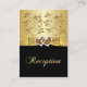 Este elegante cartão de recepção floral preto e dourado tem uma fita de aparência metálica de ouro IMPRESSA e arco com um par de brilhante IMPRESSO e joias de diamante unidas a ele que corresponde ao convite de 50 anos de casamento mostrado abaixo. Todo o texto é personalizável, assim como as opções de papel. Se houver outros itens correspondentes necessários, envie seu pedido por e-mail para niteowlstudio@gmail.com.