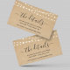 Cartão de Gabinete do Site Rustic Wedding Details - Luzes de fada românticas em um pano de fundo kraft para comunicar seu RSVP e detalhes do casamento.