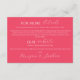 Adicione uma pop de cor ousada e moderna à sua suíte de casamento com este cartão de detalhes de casamento rosa-quente. Apresentando sotaques elegantes de script e espaço para compartilhar informações importantes sobre o dia do casamento, esta inserção é perfeita para direcionar convidados para seu site, detalhes de acomodação ou planos de recepção. A cor vibrante e a tipografia na moda fazem dela uma peça destacada para casais que adoram um olhar divertido e avançado.
