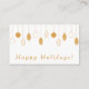 Personalize este cartão de marketing comercial dos Enfeites de natal de tendência. Isso é perfeito para um negócio de comércio eletrônico, como uma butique, loja Etsy ou qualquer outra pequena empresa. Ele apresenta a frase "Feriados Felizes" e tem texto personalizável. O verso tem informações de contato da empresa. Este produto incentiva os compradores a seguirem seus negócios nas mídias sociais.