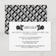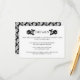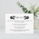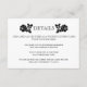 Os detalhes do casamento de rosas brancos pretos inserem o cartão. Este elegante cartão de casamento contém dois rosas pretos, a palavra DETAILS e você pode personalizá-lo e adicionar sua redação. Use-o como cartão de recepção, instruções ou acomodações, para seu site ou registro, etc. No verso há um padrão de rosa preto e branco.