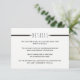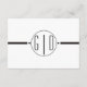 Os detalhes do casamento elegante do monograma preto e branco inserem o cartão. Este simples cartão de casamento moderno mostra a palavra DETAILS enquadrada em uma linha preta e você pode personalizá-la e adicionar sua redação. Use-o como cartão de recepção, instruções ou acomodações, para seu site ou registro, etc. No verso há um círculo acentuado com dois pequenos corações em preto e branco e suas iniciais.