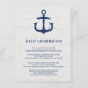 Uma âncora azul marinho sobre uma madeira como fundo branco. Perfeito para um casamento temático náutico, especialmente quando se vai com um estilo rústico ou vintage. Esses cartões podem ser personalizados com qualquer texto que você quiser - útil para instruções, informações de acomodação, menus, programas ou convites de festas.