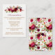 Esta bonita cor-de-água entorpecida floral e penas acomodações de casamentos folheados inclui burgundy, crimson, beringela, marsala, rosas de creme ou flores do tipo peônico com folhas verdes e ramos em tons de verde-azeitona, ferrugem, laranja queimada e castanho, juntamente com penas coloridas combinadas em laranja, roxo, cinza e preto. O texto personalizável está em uma paleta de cores dourada e arrojada e o dorso tem um padrão de buquês nas mesmas cores.