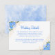 Inclua detalhes adicionais, como opções de hotel e instruções, no seu conjunto de convites com esses cartões detalhados. Rosas de aquarela azuis com acentos florais de ouro formam buquês em dois cantos, e o texto pode ser facilmente alterado, ou clique em "Personalizar mais" para fazer ainda mais mudanças no design.