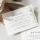 Boho Sage Greenery Botânico Olive Elegante Simples De Casamento Cartão De Invólucro. Cartão de Detalhes Botânico minimalista, ao estilo boêmico, arranjado com botânico elegante e simples, com boho verde, em cor d'água impressa à mão. O fundo de aquarela verde é maravilhoso para casamentos de boho e casamentos verdes. Cartão de Detalhes Editável para primavera, verão, outono (outono) e casamentos no inverno.
