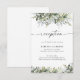 Cartão de Casamento de Herbal Greenery. Este cartão de cerimônia de na moda e elegante apresenta um lindo verde floral de cor aquosa, pintado à mão, eucalipto. Localizar itens correspondentes na Coleção de Verduras Fluviais Eucalyptus Eucalyptus.