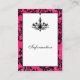 Este moderno cartão de informações de casamento rosa-quente, preto e branco com candelabro tem uma borda de padrão roxo e preto que corresponde ao convite de casamento mostrado abaixo. Você também pode usá-lo para instruções, registro de presentes, site de casamento ou um cartão de poço de desejo. Se houver outros itens correspondentes necessários, envie seu pedido por e-mail para niteowlstudio@gmail.com.