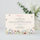 Boêmia, rústica e moderna, este é um cartão de cerimônia de detalhes de flores silvestres. O design apresenta flores delicadas e elegantes de flor silvestre em tons bonito de azul, terracota, rosa, ferrugem, roxo e amarelo num fundo de marfim cremoso. As borboletas e as abelhas acrescentam o toque caprichoso e bonito final. Você pode personalizar facilmente o texto de acordo com as suas necessidades. Entre em contato com o designer para verificar se há variações neste design ou se há outros produtos correspondentes.