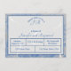 O design apresenta um efeito de "mármore" elegante em tons azuis e cinzas como fundo para a forma que exibe o seu texto. A aparência de fitas delicadas sobrepõe o design. O verso apresenta o mesmo efeito de mármore com a imagem da fita e do arroz lançado. Todo o texto é personalizável.