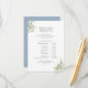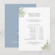 Mantenha os seus convidados informados com este elegante cartão itinerário azul e elegante, com um esquema limpo e minimalista que é perfeito para traçar os detalhes do dia do casamento ou dos eventos do fim de semana. Os sotaques florais suaves adicionam um toque de sofisticação ao design, fazer uma bela adição à sua papelaria de casamento. Personalize com sua agenda, locais de eventos e outros detalhes importantes para garantir uma celebração perfeita.