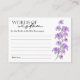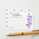 Com flores de lírio roxas lavanda desenhadas à mão e decorações botânicas delicadas, este cartão de Palavras de Sabedoria para chá de noiva sofisticado é uma ótima maneira de espalhar amor e sabedoria. Um cartão de acompanhamento de casamento contemporâneo para a noiva, ideal para que os visitantes escrevam observações sinceras, bênçãos e orientações sobre o casamento. Elegante, personalizado e adornado com flores, este memento será apreciado por muitos anos.