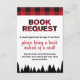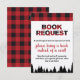 Peça aos convidados para trazerem livros em vez de cartões e veja a biblioteca do seu bebê crescer! Este cartão de inserção xadrez impresso na frente e no verso é perfeito para um chá de bebê e tem um convite correspondente. Inclui padrão xadrez vermelho e preto de búfalo e silhueta de árvore.