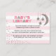 Combine o seu convite para chá de fraldas de estrela cintilante com este traz um livro para o cartão de solicitação de biblioteca do bebê em rosa e prata com lua, estrelas, listras e brilho