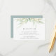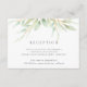 Projetado para combinar com nossa coleção de casamento botânico arejado, este cartão de recepção verde e branco apresenta um spray de folhagem verde pastel e folhas, com os detalhes da recepção, horário e endereço.