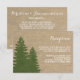 Esta coleção de casamento de inverno rústico apresenta um fundo com aparência de sacaria e uma silhueta de floresta de árvores de pinheiro verde-escuras. Perfeito para o seu casamento de inverno com tema rústico ou vintage.