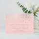Cartão de recepção elegante e moderno com pontos de confete prateados em fundo rosa blush. Esta é folha de prata falsa - NÃO haverá folha de prata real. Este é parte de um conjunto de casamento. Itens correspondentes estão disponíveis.