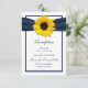 Os girassóis são uma flor de casamento clássica e bonita. Eles nunca saem de moda. Neste cartão de inserção de recepção de casamento, a flor amarela brilhante e alegre é combinada com uma fita azul-marinho em um fundo branco. Uma combinação linda para um casamento de primavera, verão ou outono e o cartão de recepção perfeito para um casamento com tema de girassóis. O texto é totalmente personalizável. Para alterar o texto, use a opção personalizar. Para alterações mais extensas no cartão, como alterações na fonte, cor da fonte, tamanho da fonte ou posicionamento do texto, use a opção personalizá-lo. Você pode alterar o texto e usar isso como uma direção, acomodação e/ou informação geral de casamento. Este cartão está atualmente configurado para imprimir no tipo de papel básico, mas também ficaria bonito nos outros tipos de papel. OBSERVAÇÃO: Este convite é um design plano sem quaisquer adornos 3D. Se você quiser quaisquer produtos de papelaria adicionais para acompanhar este cartão-resposta, clique em "contato" e envie uma mensagem por e-mail para o designer, "wasootch