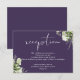 Este cartão de detalhes de casamento com folhas de folhagem botânica elegante pode ser personalizado com suas informações em tipografia sofisticada em um fundo roxo. Projetado por Thisisnotme