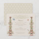 Celebre seu dia especial com nosso Cartão de Recepção de Casamento de Jardim Encantado, uma visão de romance clássico e elegância. A design apresenta uma mostra simétrica de urnas gregas adornada com uma abundância de peônias cor-de-rosa pinceladas, acentuadas com verde sábio. As cereias graciosas e as borboletas brancas dançam entre as flores, acrescentando um toque mágico. Um plano de fundo creme e dourado fornece uma aparência vintage que complementa o script cursivo do ornamentado anunciando seus detalhes de recepção. Esta carta requintada convida seus convidados a jantar, dançar e se divertir com a celebração do seu casamento.