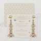 Celebre seu dia especial com nosso Cartão de Recepção de Casamento de Jardim Encantado, uma visão de romance clássico e elegância. A design apresenta uma mostra simétrica de urnas gregas adornada com uma abundância de peônias cor-de-rosa pinceladas, acentuadas com verde sábio. As cereias graciosas e as borboletas brancas dançam entre as flores, acrescentando um toque mágico. Um plano de fundo creme e dourado fornece uma aparência vintage que complementa o script cursivo do ornamentado anunciando seus detalhes de recepção. Esta carta requintada convida seus convidados a jantar, dançar e se divertir com a celebração do seu casamento.