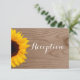 Cartões de Recepção de Casamento de Madeira Rústica com Girassol Country. Este cartão de recepção de casamento tem um fundo com impressão de textura de madeira desgastada com um belo girassol amarelo na lateral. Ótimo para casamentos country, casamentos em celeiros e casamentos de cowboy. Escolha entre cantos quadrados ou arredondados. Basta adicionar os detalhes da recepção no verso do cartão.