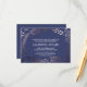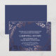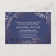 Este cartão de recepção de casamento elegante em dourado rosa e azul marinho é perfeito para um casamento sofisticado. O design apresenta uma moldura floral em tons de rosa suave sobre um fundo azul escuro. Personalize este cartão com as informações da sua recepção e inclua o endereço do seu site de casamento também!