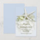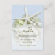 Cartão incluso de recepção de casamento no jardim à beira-mar. Grande estrela-do-mar branca e flor de hortênsia branca em azul claro para combinar com o conjunto. Inclua o local da recepção e horário e informações adicionais, se necessário, em cartões pequenos de 3x5.