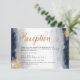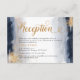 Cartão de Recepção de Cerimônia de marinho e de Casamento Dourado. Este na moda e elegante Convite para Chá de Casamento apresenta um Marinho de aquarela pintado manualmente e Dourado. Localizar itens correspondentes na Coleção de Marinhos e Dourados.
