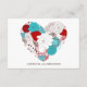 Cartão de Recepção de Casamento Tiffany Azul e Vermelho com Coração Floral Caprichoso