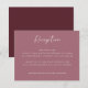 Este cartão moderno de recepção de casamento de escrita manual é feito em um belo merlot profundo / vinho / cor vermelho burgundy. Dê aos seus convidados os detalhes importantes da sua recepção de casamento com este cartão de recepção de casamento moderno.