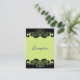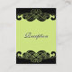 Este cartão de recepção de Rolamentos em Preto e Preto Verde corresponde ao convite e a outros itens mostrados abaixo. Alguns documentos podem alterar a cor do design, portanto, tenha cuidado ao escolher qualquer um dos tipos de papel. ALÉM DISSO, se você redimensionar a placa, ou se você alterar fontes, ou o tamanho da fonte, parte do design e/ou texto poderá ser cortada. Tudo será impressão como você vê no seu monitor. Não verei o seu cartão, e Zazzle NÃO corrigirá nada (erros de digitação, alinhamento incorreto, etc.). O texto e o papel são todos personalizáveis. Se precisar de ajuda com este cartão, envie-me um e-mail ANTES de fazer seu pedido. Se você precisar de outros itens correspondentes, envie um e-mail para niteowlstudio@gmail.com