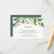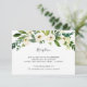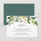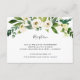 Projetado para combinar com nossa coleção de casamento Alabastro, este cartão de recepção com detalhes em verde fresco e branco apresenta um spray de folhagem em aquarela e flores brancas destacando os detalhes da recepção do casamento, local e horário.