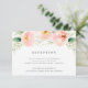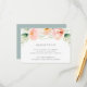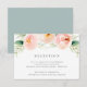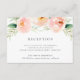 Projetado para combinar com nossa coleção de casamento Airy Floral, este cartão de recepção floral exuberante apresenta um spray de flores e folhas em aquarela pastel em pêssego e verde menta, destacando os detalhes da recepção, horário e endereço.