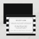 Projetado para combinar com nossos convites de casamento e evento Metro Stripe preto e branco, este cartão de informações de recepção simples e elegante apresenta um fundo de listras horizontais largas em preto e branco nítido, com os detalhes da recepção do seu casamento em uma mistura de estilos tipográficos modernos e tradicionais. Adicione seus detalhes importantes, como horário, local e transporte ou estacionamento, usando os campos fornecidos.