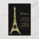 Informações Cartão de Recepção Preto e Dourado da Torre Eiffel