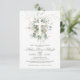 Este design apresenta uma ilustração da folhagem verde e dourada no estilo de aquarela. Acima das folhas - confetti adornou o topo da carta (suas imagens podem ser removidas). Na folhagem verde há uma imagem de uma Cruz.