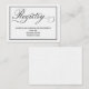 Uma solução sofisticada e elegante, este cartão de informação de registro de casamento com letra de caligrafia chic é ideal como inclusão no conjunto de convites de casamento.