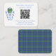 Este simples e elegante cartão de inserção de código QR (para registro ou RSVP ou qualquer outra coisa relacionada ao evento) apresenta minha ilustração original de jarra de gengibre azul e branca com laço verde. No verso, há um xadrez escocês azul e verde festivo.