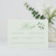 Cartão de resposta de RSVP de casamento verde-salvia com listras verticais elegantes e um delicado acento floral de chinoiserie. Projetado para que os convidados aceitem ou recusem com alegria, selecionando sua escolha de refeição, este cartão de resposta adiciona charme refinado de jardim ao seu conjunto de convites coordenados. Perfeito para casamentos de primavera e verão com uma estética romântica de cottage inglês.