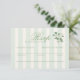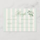 Cartão de resposta RSVP de casamento verde sage com listras verticais elegantes e um delicado acento floral de chinoiserie. Projetado para que os convidados aceitem ou recusem com alegria, selecionando sua escolha de refeição, este cartão de resposta adiciona charme refinado de jardim ao seu conjunto de convites coordenados. Perfeito para casamentos de primavera e verão com uma estética romântica de cottage inglês.