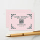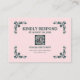 Adicione um toque moderno ao seu conjunto de casamento islâmico com este cartão de RSVP com código QR. Com um fundo suave de cor de rosa e acentos florais cinza escuro, este cartão elegante permite que os convidados leiam um código QR para respostas online fáceis. Perfeito para celebrações de Nikah e Waleema, combina simplicidade e facilidade digital em um design atemporal.