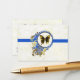 Cartaz de seleção de recepção de casamento, com design de borboleta azul e dourada, em fundo malhado dourado e creme. Personalize o texto de acordo com as suas necessidades.