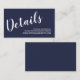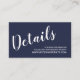 Marinho de Script Moderno Blue Wedding Invitation Suite : Cartão de Site de Casamento com título em letra branca de script moderno com detalhes na fonte sans serif moderna em fundo azul marinho.