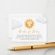 Cartões de solicitação de livro para chá de bebê ensolarado com um design encantador de nuvens fofas, um sol radiante e uma mensagem de "livros para o bebê".