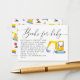 Cartões de solicitação do livro do chá de fraldas de construção com ilustração de aquarela de um trator. O cartão aos hóspedes que tragam um livro infantil novo ou usado em vez de um cartão.
