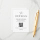 Use nossos cartões de detalhes modernos para permitir que seus convidados leiam o código QR para visualizar os detalhes do seu casamento e endereço do site. Este item faz parte da nossa suite de convite de casamento Colette C300, visite nossa loja para ver a coleção de itens coordenados.