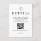 Use nossos cartões de detalhes modernos para permitir que seus convidados leiam o código QR para visualizar os detalhes do seu casamento e endereço do site. Este item faz parte da nossa suite de convite de casamento Colette C300, visite nossa loja para ver a coleção de itens coordenados.